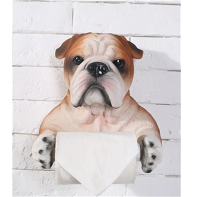 Simulation Dog English Bulldog Bathroom toilet creative toilet paper holder Resin Action Figure Col